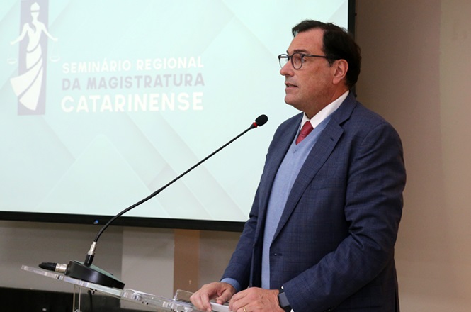 A abertura do Seminário Regional da Magistratura Catarinense, realizada na noite desta quinta-feira (5/6), em Blumenau, foi marcada por uma firme defesa da unidade do Poder Judiciário e da independência judicial. Diante de magistradas e magistrados de diversas comarcas do Estado, o presidente do Tribunal de Justiça de Santa Catarina (TJSC) e do Conselho de Presidentes dos Tribunais de Justiça do Brasil (Consepre), desembargador Francisco Oliveira Neto, alertou para os riscos institucionais representados por ataques a integrantes do Supremo Tribunal Federal (STF).