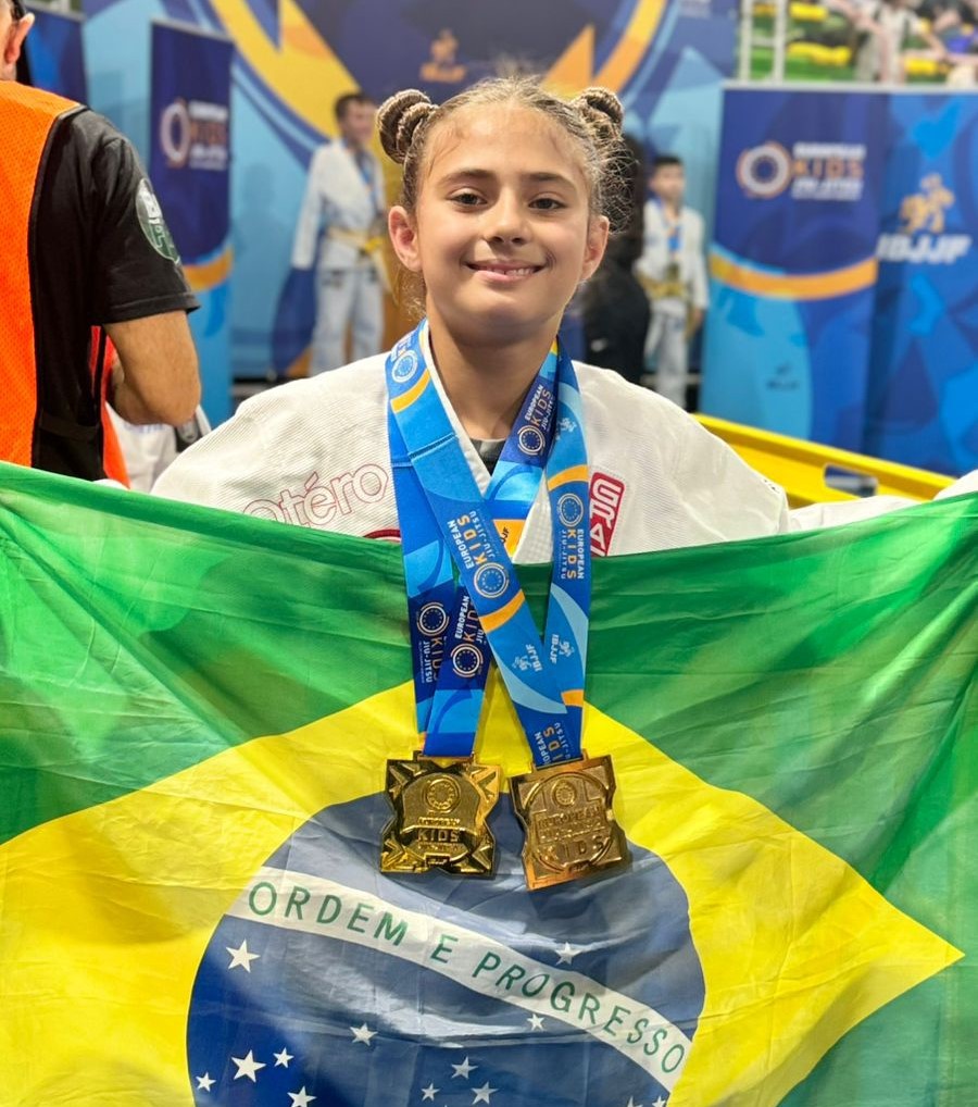 A atleta catarinense Jade Mendonça se consagrou, no sábado (17), bicampeã europeia de jiu-jítsu, categoria kids. A competição foi realizada na cidade de Roma, na Itália, e a “Princesa Jade”, como é conhecida nas artes marciais, repetiu o feito de 2023 e venceu a competição pela segunda vez em sua carreira.