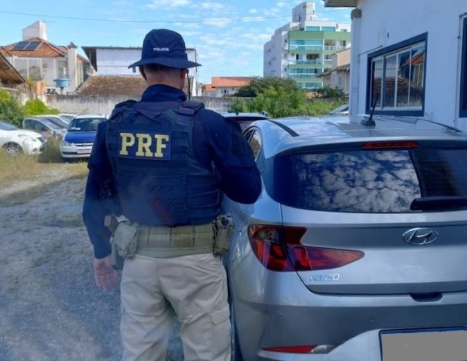 A Polícia Rodoviária Federal (PRF) apreendeu, na tarde desta segunda-feira (9), na BR-101, em Palhoça, um automóvel roubado em São Paulo e que circulava clonado.