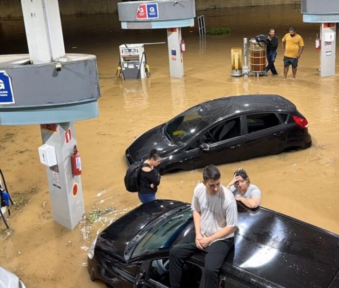 As autoridades orientam que motoristas evitem atravessar áreas alagadas e busquem rotas alternativas enquanto persistirem as chuvas.