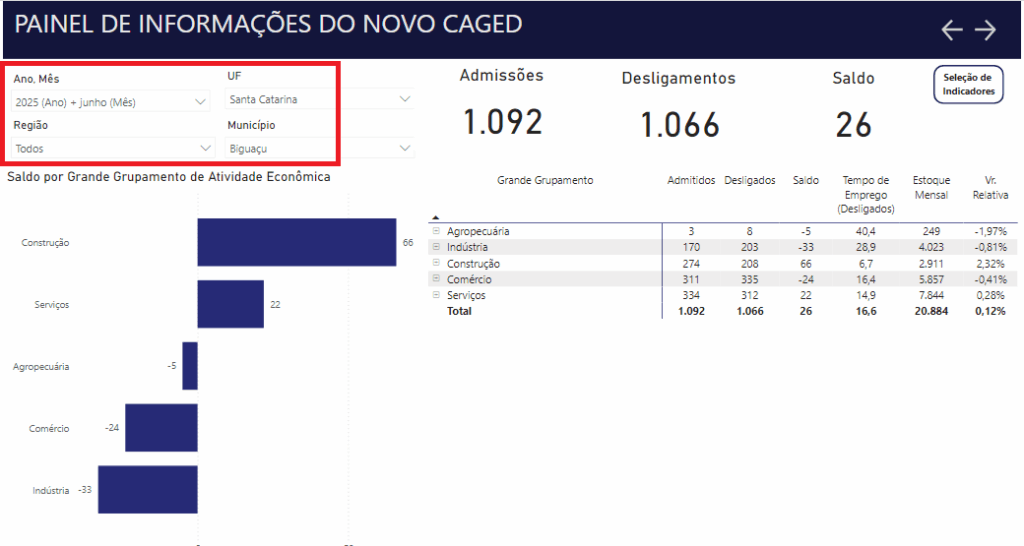 As empresas instaladas em Biguaçu geraram 26 novas vagas de trabalho no mês de junho de 2025, de acordo com dados divulgados nesta segunda-feira (4), pelo Cadastro Geral de Empregados e Desempregados (Caged) do Ministério do Trabalho e Previdência Social.