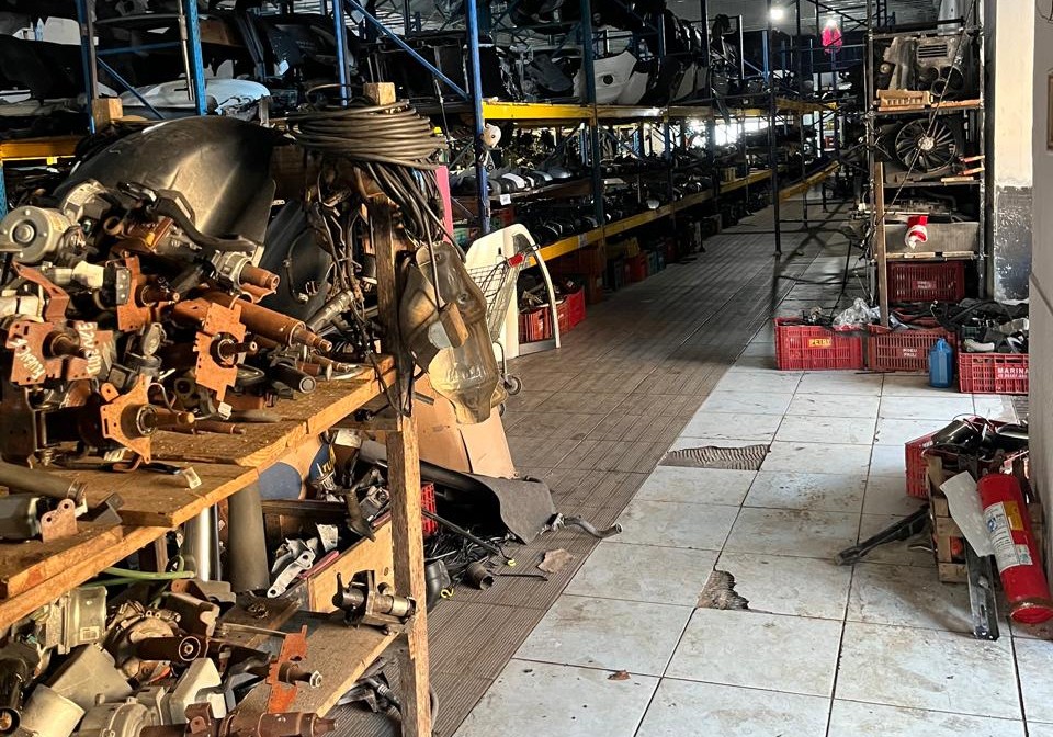 Durante a diligência realizada na segunda-feira, foram encontrados componentes pertencentes a 10 veículos distintos com procedência ilícita, sendo 3 com registro de furto/roubo e 7 com a numeração suprimida, prática utilizada para ocultar a origem criminosa das peças.