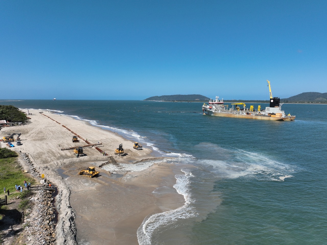 Trata-se da maior obra de engordamento de praia já realizada no Brasil, tanto em volume quanto em extensão – serão 8 quilômetros de faixa litorânea beneficiados, podendo atingir até 200 metros de largura.