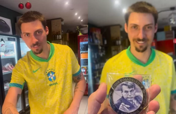 Filho de Jair Bolsonaro (PL) e vereador de Balneário Camboriú, Jair Renan (PL) presenteou um comerciante da cidade do litoral catarinense com uma medalha com o rosto do pai desenhado e os dizeres ‘imbrochável, imorrível e incomível’.