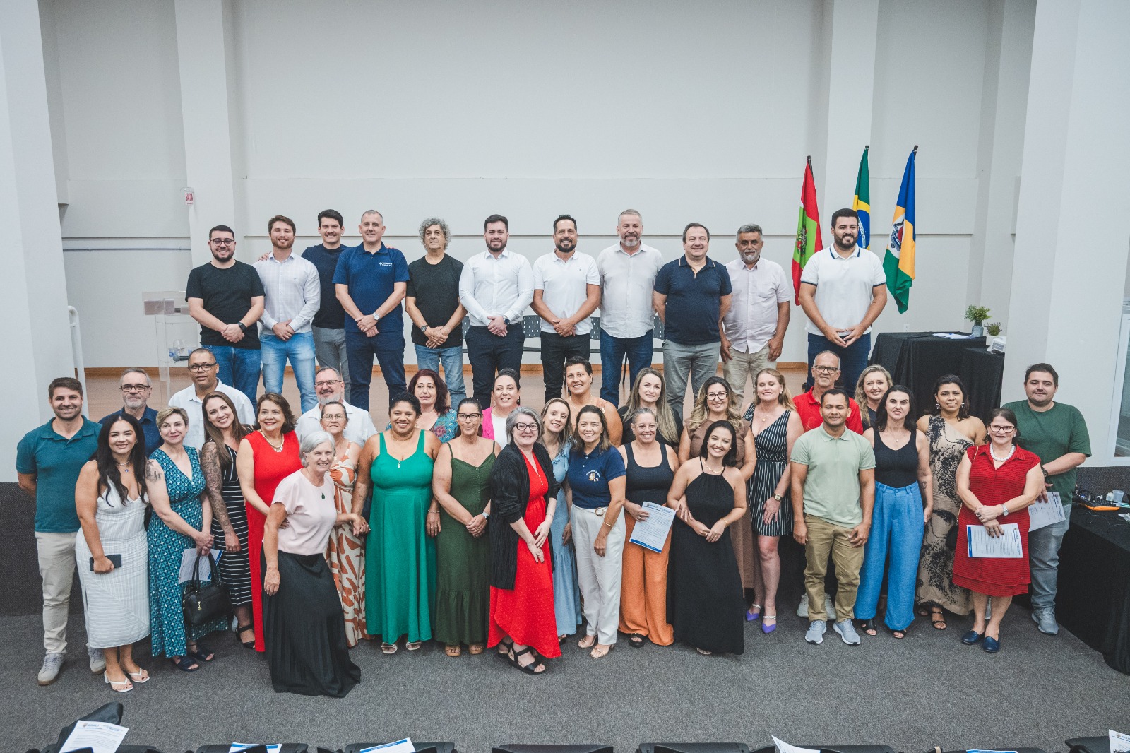 Participaram do ato o prefeito Salmir da Silva, o vice-prefeito Alexandre Martins de Souza, o secretário de Educação Gustavo Sagas, o presidente da Câmara João Luiz Luz, secretários municipais, vereadores, servidores e familiares dos diretores.