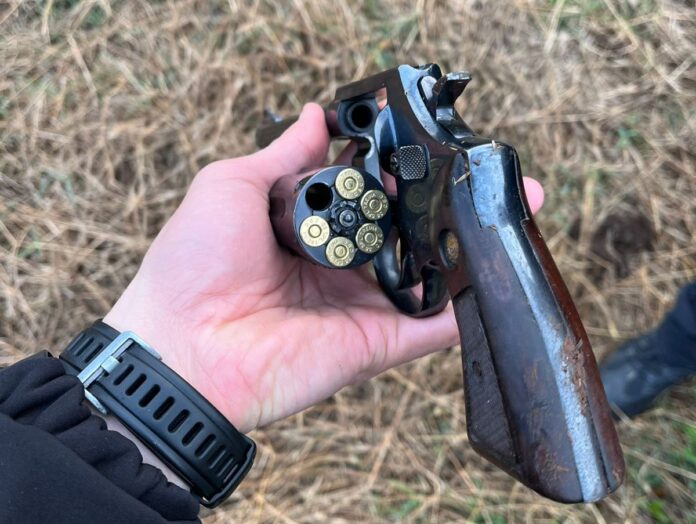 O revólver, que constava com alerta de furto no sistema SINARM, foi encontrado do lado de fora da casa, sugerindo ter sido arremessado pela janela no momento em que os policiais anunciaram o cumprimento do mandado.