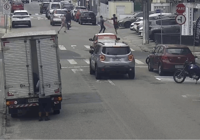 Populares detiveram um homem que havia furtado o celular de uma mulher que caminhava por uma rua do bairro Campinas, segurando o aparelho na mão. Ao ser assaltada, a vítima gritou por socorro, e moradores que estavam próximos identificaram o suspeito fugindo. Eles o perseguiram e conseguiram detê-lo na Avenida Salvador Di Bernardi, na esquina com a Avenida Governador Jorge Lacerda.
