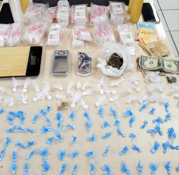 A ação ocorreu no bairro Itacorubi, onde os policiais civis cumpriram mandado de busca e apreensão em uma residência. No local, foram apreendidas aproximadamente 250 porções de cocaína, além de cerca de 250 gramas de haxixe, embalagens diversas para acondicionamento de drogas, duas balanças de precisão, cadernos com anotações do tráfico, dois aparelhos celulares e quantia em dinheiro em moeda nacional e estrangeira.