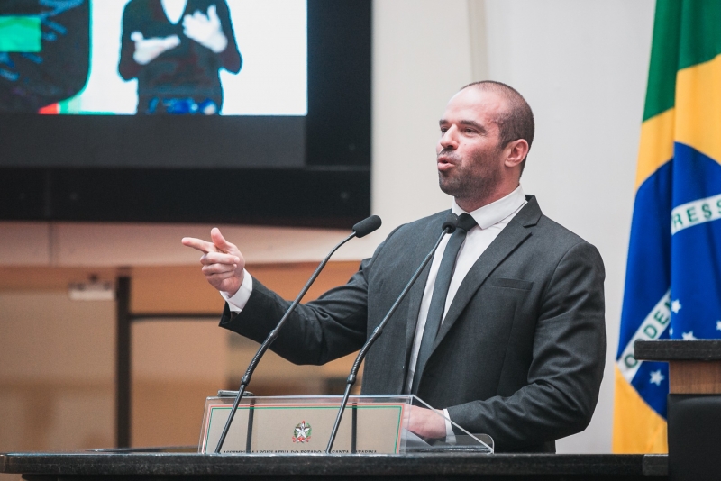 “O promotor, em seu gabinete com ar-condicionado, decidiu que agora está liberado desacatar e desrespeitar a polícia na abordagem. Porque, se a polícia fizer qualquer coisa, você tem que pagar indenização ainda às pessoas”, disse, dirigindo-se depois aos integrantes da Polícia Militar: “Fico admirado com a força de vontade de vocês em continuar trabalhando ainda”, disse durante uso da tribuna na Assembleia Legislativa de Santa Catarina.