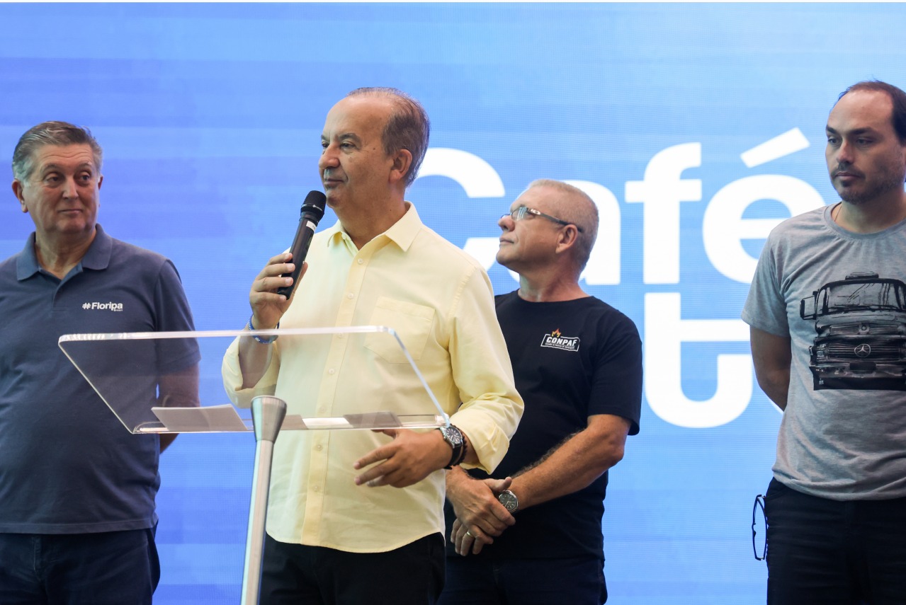 O governador de Santa Catarina, Jorginho Mello, participou, na sexta-feira (6), do evento “Café com os Pastores”, realizado na sede da Assembleia de Deus de Florianópolis. O encontro reuniu cerca de 400 pastores e contou com a presença do Assessor Alexandre da Silva ( Coordenador das Igrejas Evangélicas do Governador ), prefeito Topázio Neto, do pré-candidato ao Senado, Carlos Bolsonaro, e dos deputados estaduais Marcos da Rosa e Jair Miotto (União Brasil).