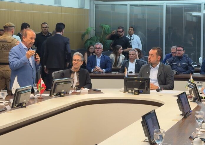 O comandante Geral da Polícia Militar de Santa Catarina, Emerson Fernandes, e o Delegado Geral de Polícia Civil, Ulisses Gabriel também acompanharam a reunião.