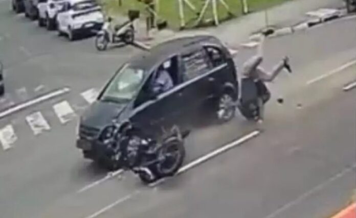 O condutor do carro alegou que o motociclista havia quebrado o retrovisor do veículo e que, por isso, foi atrás dele para cobrar ressarcimento, afirmando que a colisão teria sido acidental.