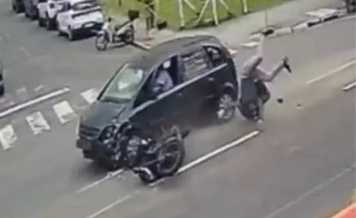 Conforme relato da vítima à PM, ele trafegava de motocicleta e, ao fazer uma rotatória, foi fechado por um carro. Ele buzinou e, segundo afirmou, recebeu gestos obscenos do outro condutor. Depois disso, seguiu pela avenida e percebeu o mesmo veículo vindo atrás em alta velocidade. Ao tentar convergir à esquerda, não conseguiu evitar a colisão e foi atingido.