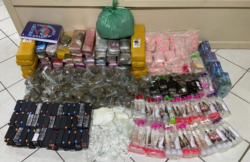 Com eles, as guarnições apreenderam um vasto arsenal de entorpecentes, incluindo 49 kg de maconha, 8.400 comprimidos de ecstasy, quase 4 kg de haxixe, cerca de 1 kg de cocaína, além de frascos de lança-perfume, MDMA e dispositivos para consumo de óleo THC.