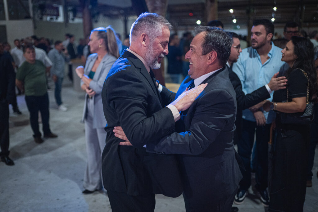 Os convidados foram chegando, um a um, molhando-se um pouco para sair de seus veículos e adentrar ao Centro de Eventos Fênix. Mas ninguém estava ligando muito para isso, pois o importante era entrar para presenciar um fato histórico. Na porta eles encontravam o anfitrião da noite, o vice-prefeito Alexandre Martins de Souza (Podemos), que em alguns instantes se tornaria oficialmente o novo prefeito de Biguaçu.