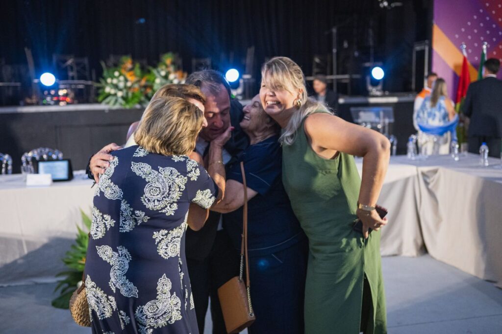 Ao final, homenagens, fotos, abraços e mensagens de boa sorte.