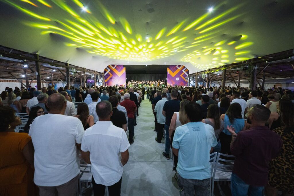 Ao fundo, um som harmonioso saía dos instrumentos da Escola de Música Reduzino Romão de Faria, que é fruto da Oficina das Artes – projeto cultural desenvolvido pela Prefeitura de Biguaçu durante a gestão de Salmir e Alexandre. Pelo sorriso das pessoas e pelo encantamento ao olharem para o palco, pôde-se perceber que elas estavam gostando do que ouviam.