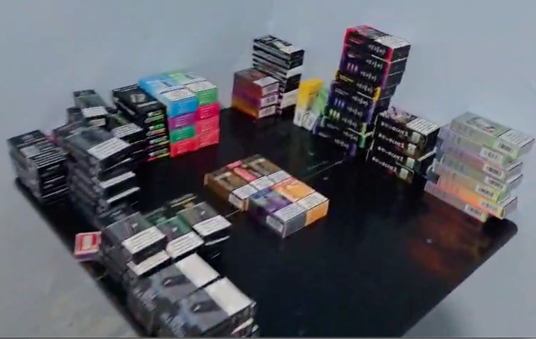 Durante a ação, uma mulher e um homem foram presos em flagrante pelos crimes de contrabando e descaminho. Os policiais apreenderam dezenas de cigarros eletrônicos, celulares pessoais dos investigados e bebidas estrangeiras de origem não comprovada.