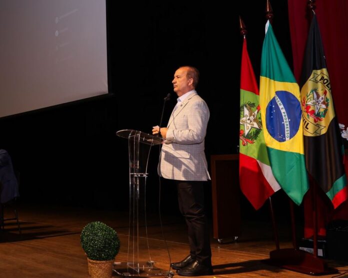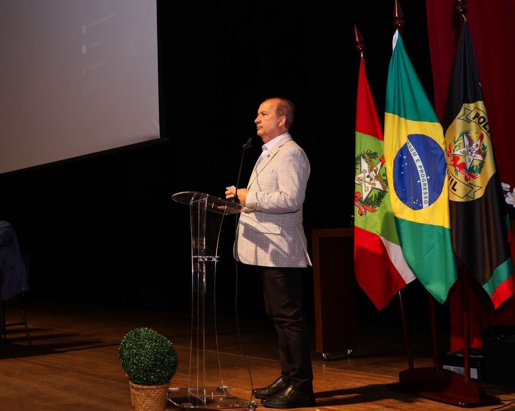 A solenidade ocorreu no Teatro Ademir Rosa do Centro Integrado de Cultura (CIC), em Florianópolis, e formou policiais chamados em concurso público, também autorizado por Jorginho Mello no fim de 2023 após 10 anos sem certame nesta área.