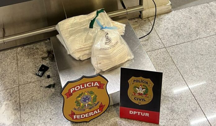 A Polícia Federal, em ação conjunta com a Polícia Civil de Santa Catarina, prendeu em flagrante, nesta segunda-feira (7/7), um homem suspeito de tráfico internacional de drogas no Aeroporto Internacional Hercílio Luz, em Florianópolis/SC.