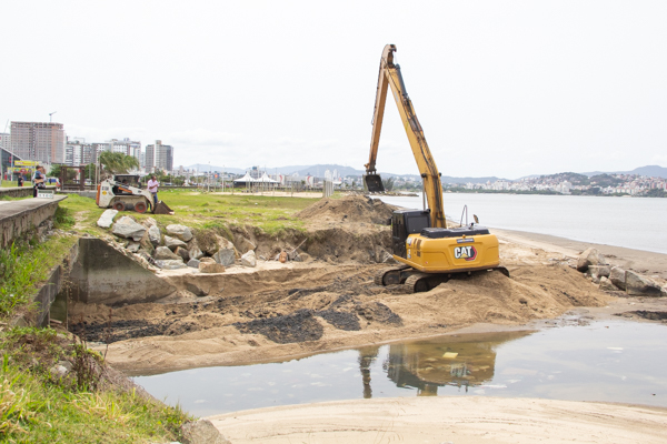 A Prefeitura de São José segue avançando com as ações de desassoreamento de rios, canais e galerias para prevenir alagamentos e mitigar os efeitos das chuvas. Nesta quinta-feira (16) e sexta-feira (17), os trabalhos se concentram na galeria que deságua na Beira-Mar de São José, nos fundos da Caixa Econômica Federal, onde uma escavadeira hidráulica equipada com concha específica e uma Bobcat realizam a retirada de areia acumulada no local.
