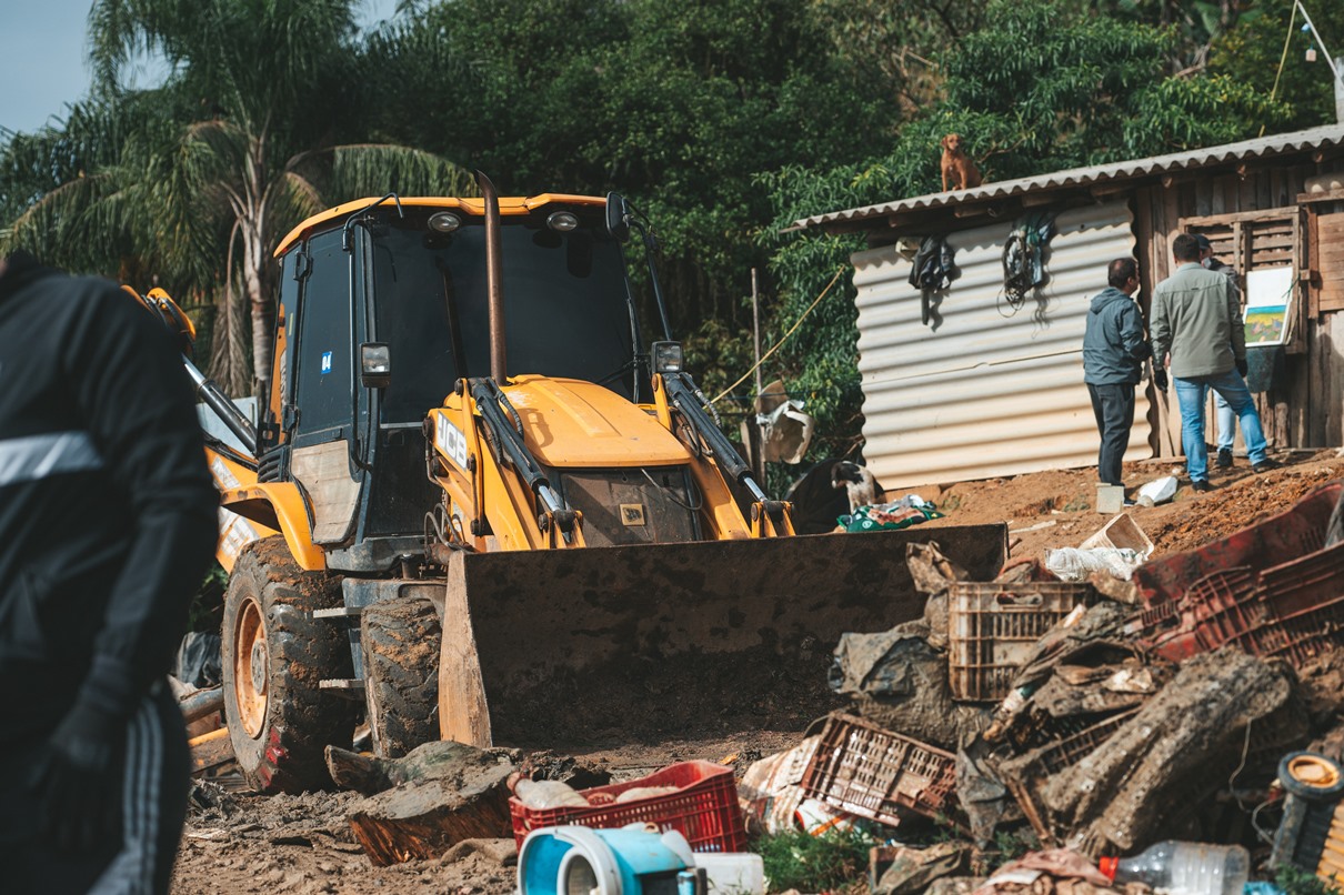 A ação foi realizada em conjunto com a Secretaria de Obras e Infraestrutura do Município, que empenhou caçambas e máquinas pesadas para retirada de rejeitos.