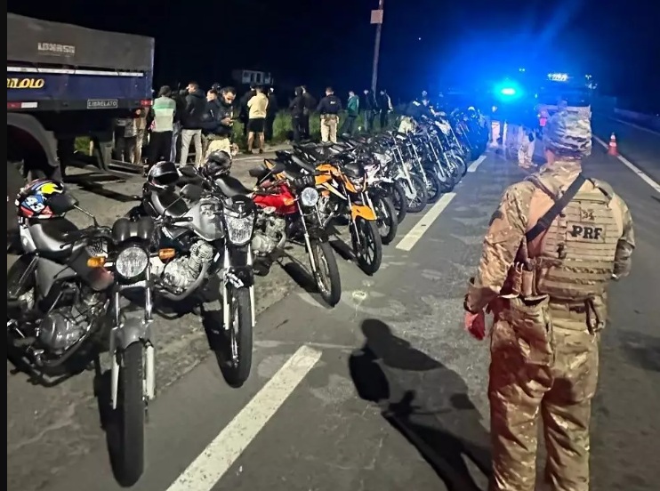 A ação ocorreu após muitas denúncias de que motociclistas estariam circulando em grandes grupos, fazendo manobras arriscadas e empinando. Os policiais montaram uma barreira em frente à unidade operacional da PRF e abordaram 21 veículos.
