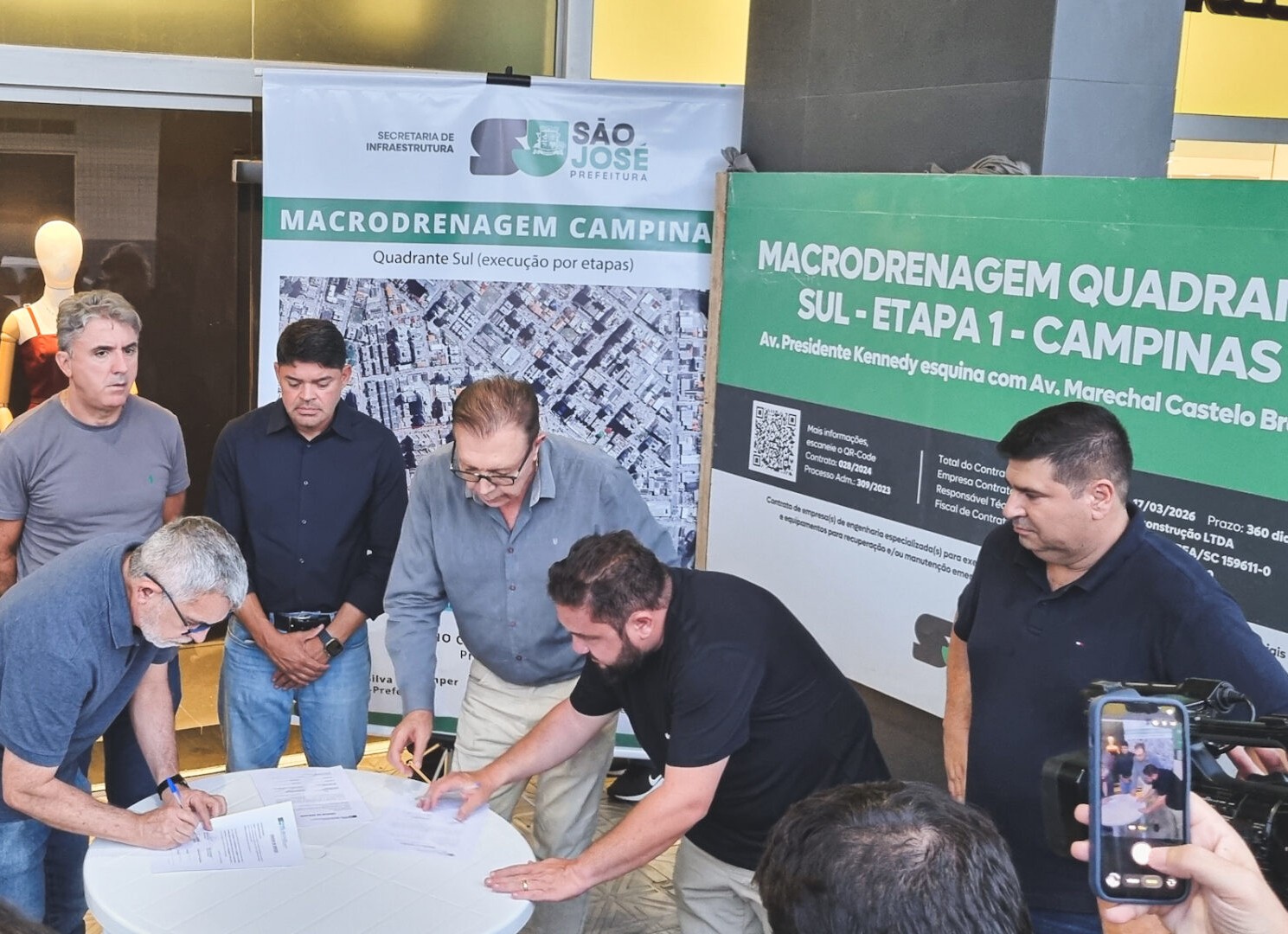 Dentro da programação de aniversário de 276 anos de São José, a Prefeitura realizou, na noite desta terça-feira (17), o ato de assinatura da ordem de serviço para as obras de macrodrenagem no bairro Campinas. A solenidade ocorreu na esquina da Avenida Presidente Kennedy com a Avenida Marechal Castelo Branco com a presença de secretários municipais, vereadores e lideranças empresariais.