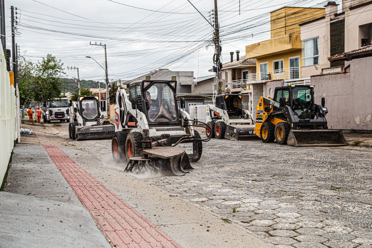 Um dos destaques da força-tarefa é o uso de três minis carregadeiras Bobcat na Rua Bom Pastor, que potencializam o trabalho das equipes. Equipadas com capinadeiras, vassouras de aço e caçambas, as máquinas permitem que os serviços avancem com mais rapidez e alcance.